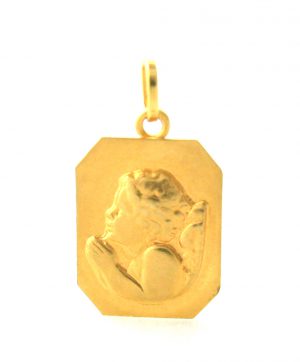Médaille de forme rectangulaire représentant le profil d’un ange priant en relief, ref : 20575 de chez Robbez-Masson.