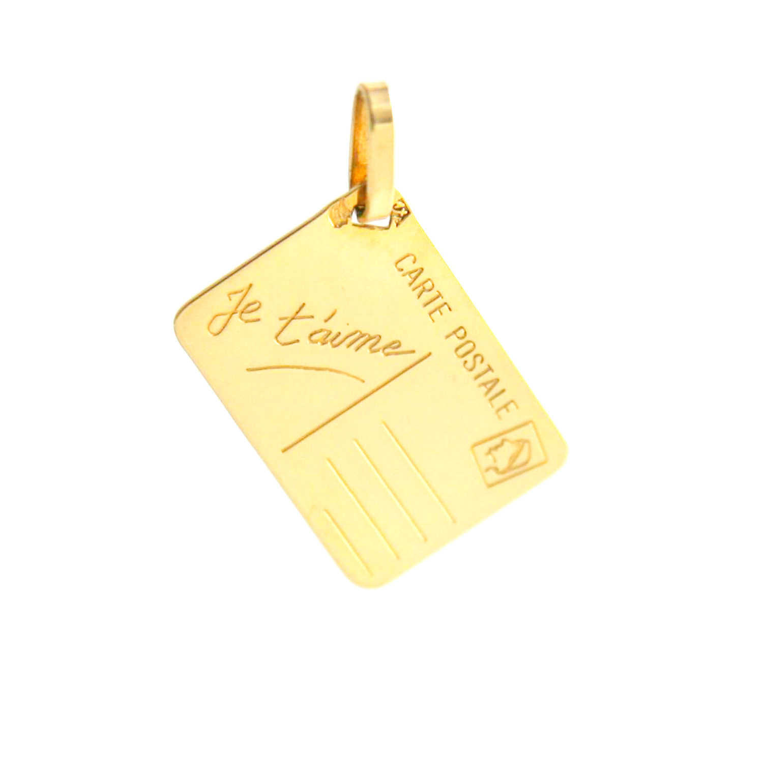 Pendentif présentation carte postale timbrée, gravé Je t’aime.